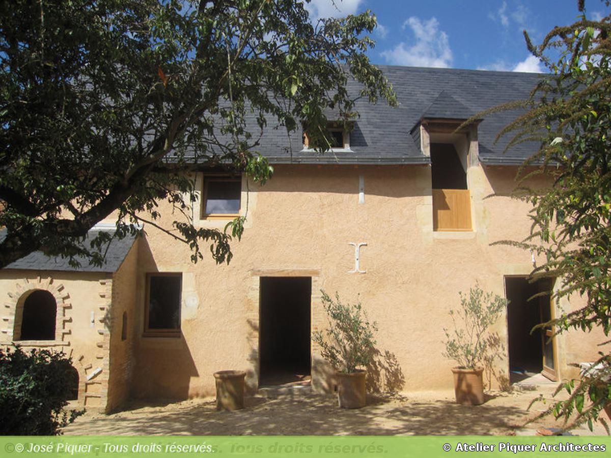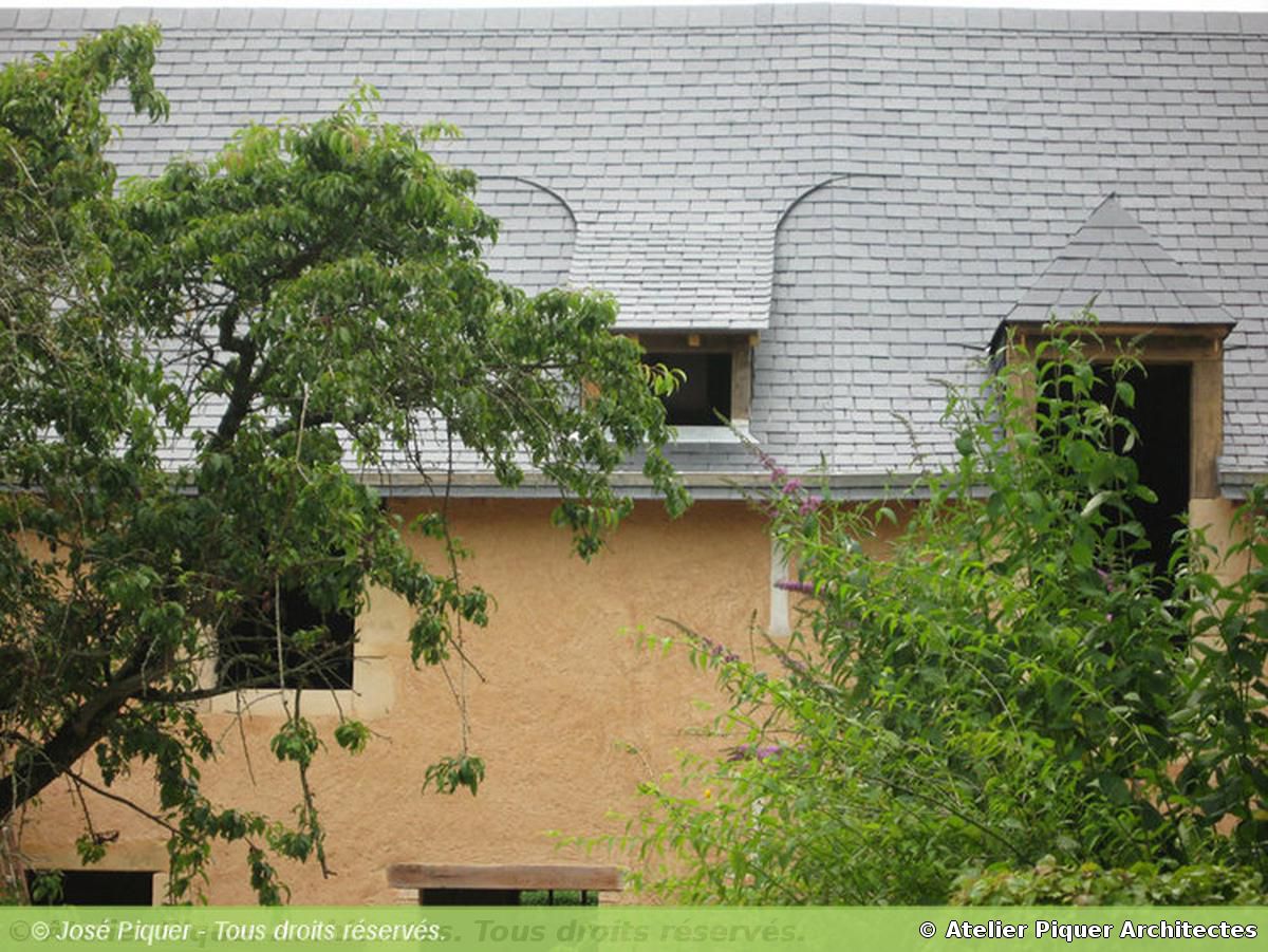 La qualité de ce projet est essentiellement due à la qualité des artisans qui ont pris en main cette réhabilitation : nous avons travaillé avec des chaux et des sables locaux, des enduits de terre, des isolants de chanvre, de la ouate de cellulose en toiture et une couverture en ardoise locale.