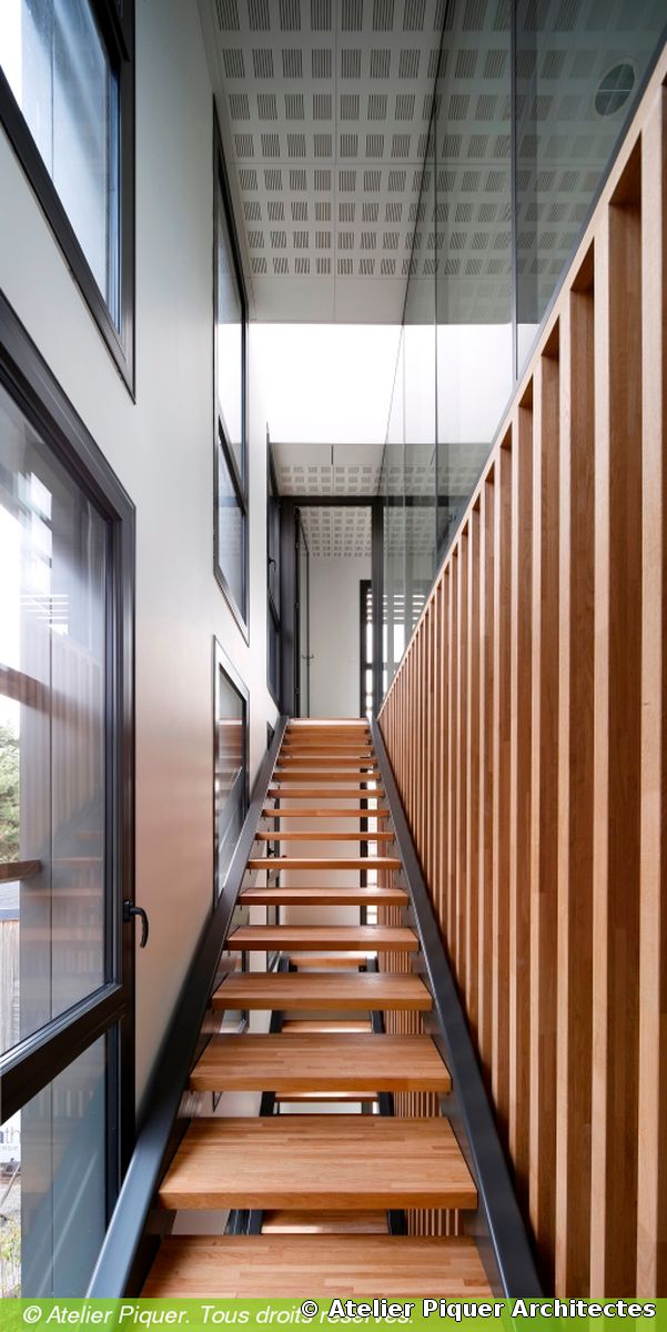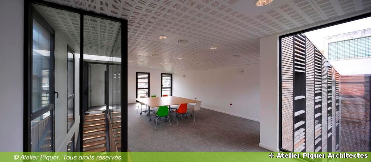 - Qui a fait un choix écologique avec un travail sur des brise-soleil fixes peu dispendieux en énergie et en maintenance. Cela fait preuve de son efficacité.