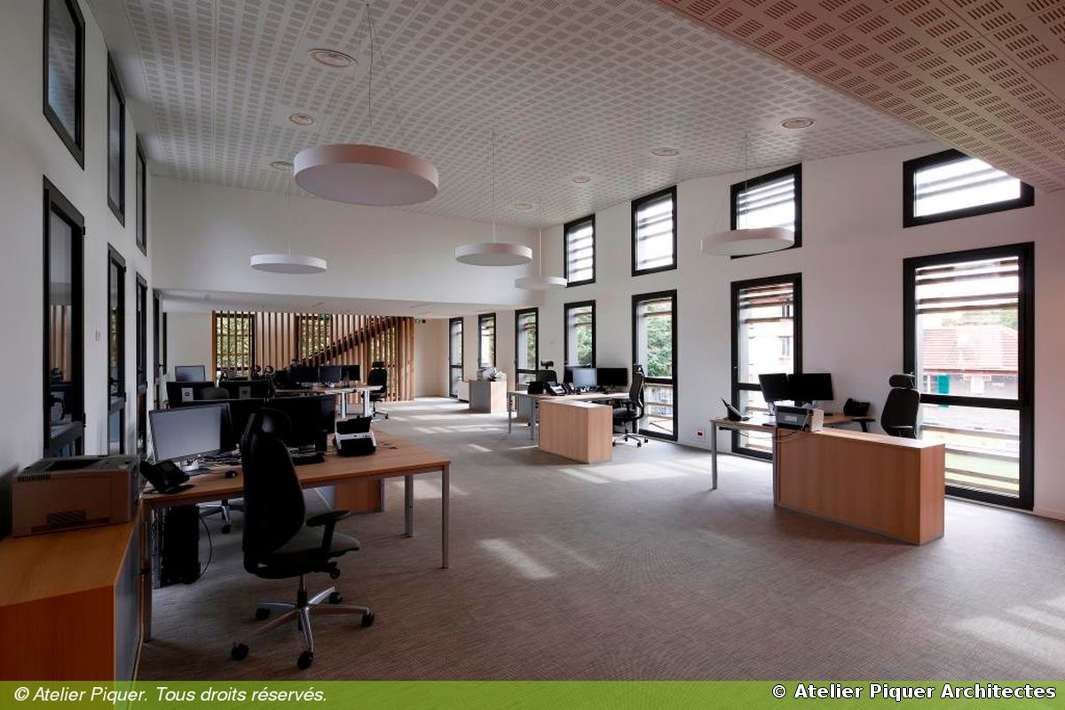 Il est composé d’une zone d’accueil, de deux grands plateaux de travail en open-space pour l’extension de la société et une salle de réunion au R+2 .